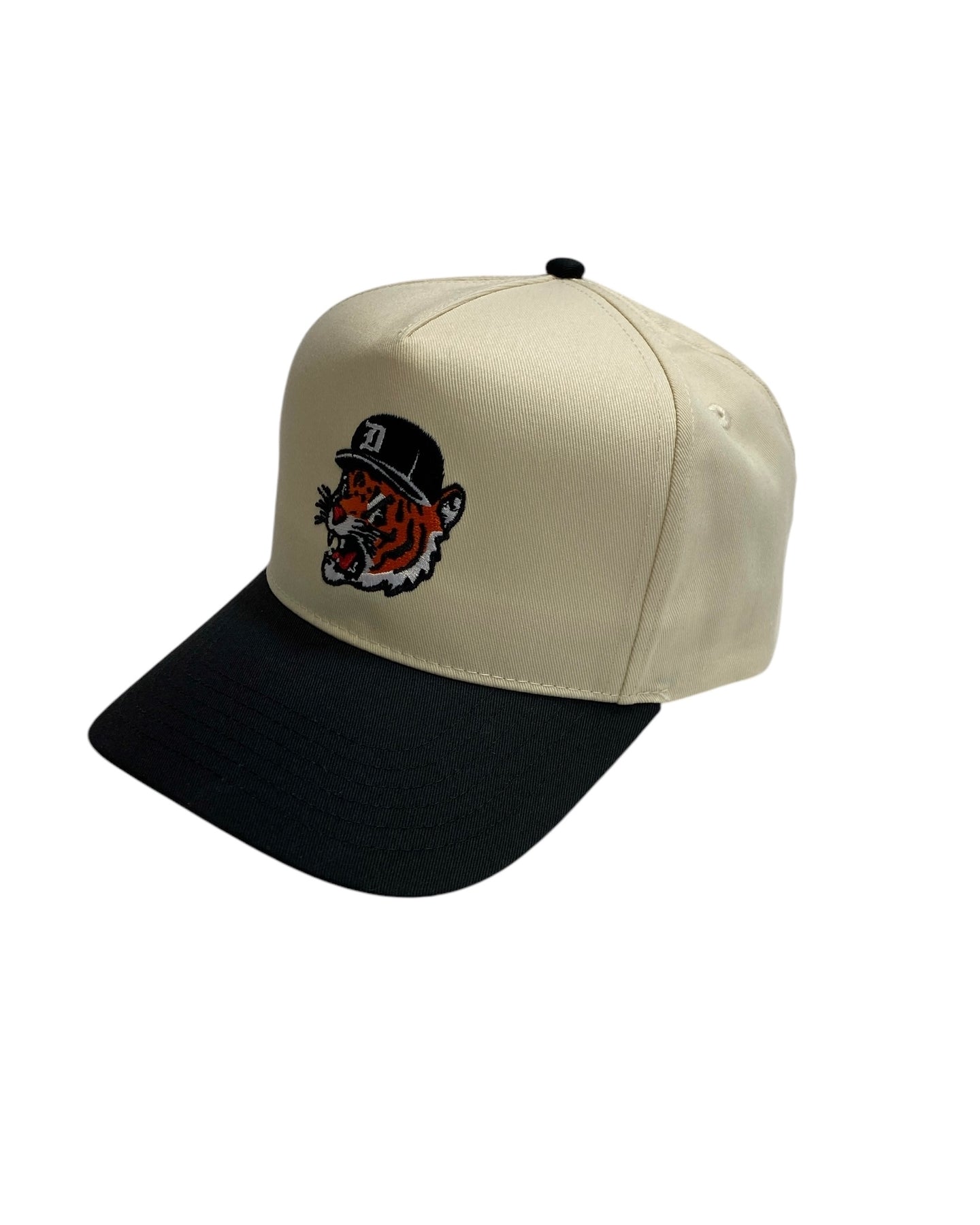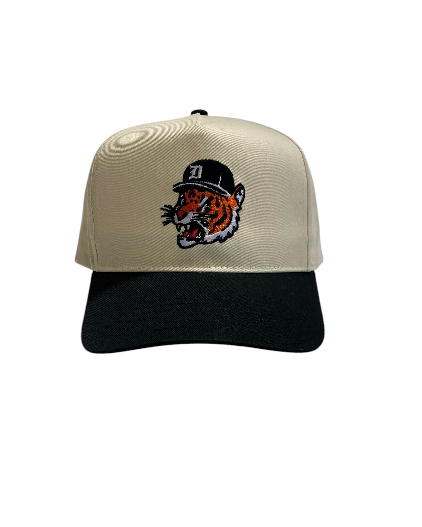 Bring bold Detroit energy to your everyday look with the Motor City Kitty 5-panel hat. Made from durable twill, this structured, mid-profile cap features a crisp 5-panel construction and a classic two-tone design—Natural crown with a contrasting Black brim for a clean, retro look. The front is stamped with a vintage-style tiger head graphic, giving a nod to Detroit’s fierce spirit and old-school grit. Finished with a curved brim and adjustable plastic snap closure for all-day comfort and fit. Whether you’re on the move or making a statement, this hat channels pure Motor City attitude.