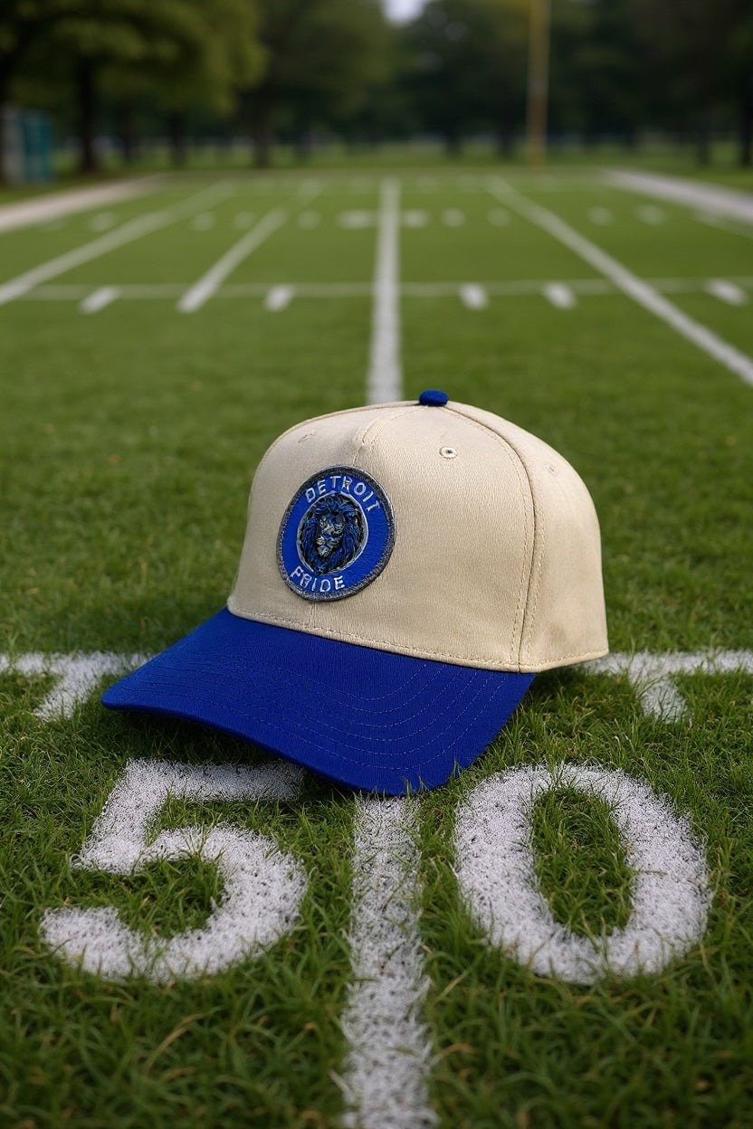 Show your Detroit roots with this striking five-panel twill snapback that combines bold royal and natural colorways for authentic local pride. The durable twill construction withstands daily wear while maintaining its sharp appearance, and the adjustable snapback closure guarantees a perfect fit every time. Whether you're tailgating, heading downtown, or simply representing the city you love, this cap delivers the style and quality that Detroit demands. Make your allegiance unmistakable.
