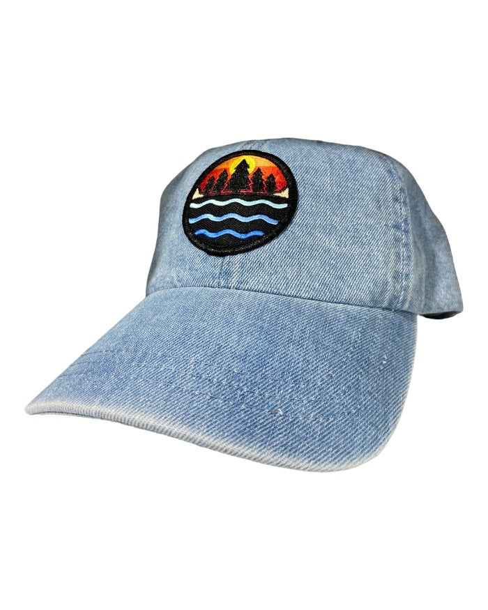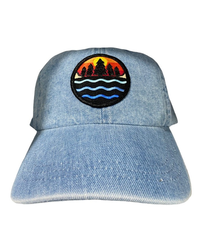 The Great Lakes State Emblem on a blue denim hat for that comfy yet durable hat you need around the Great Lakes.