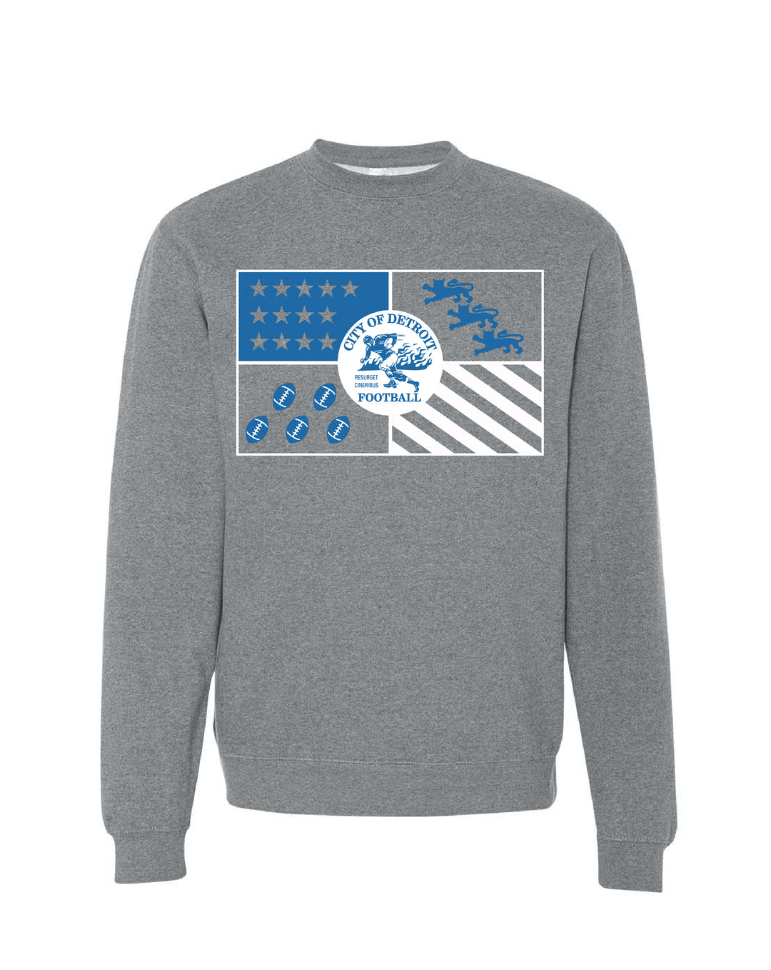 Ink Detroit - City of Detroit Football Flag Crewneck Sweatshirt- Heather Gunmetal