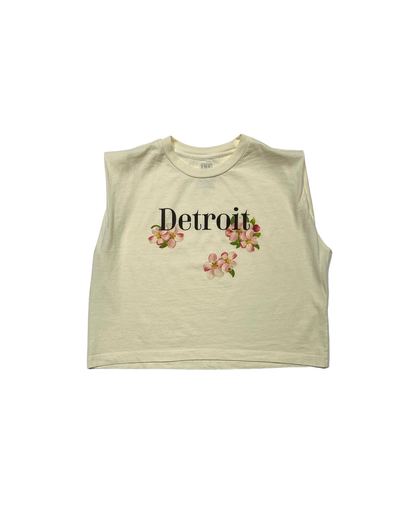 Spring is in the air and this natural color muscle tee says it all with our Detroit Apple blossom design showing Michigan's State flower.