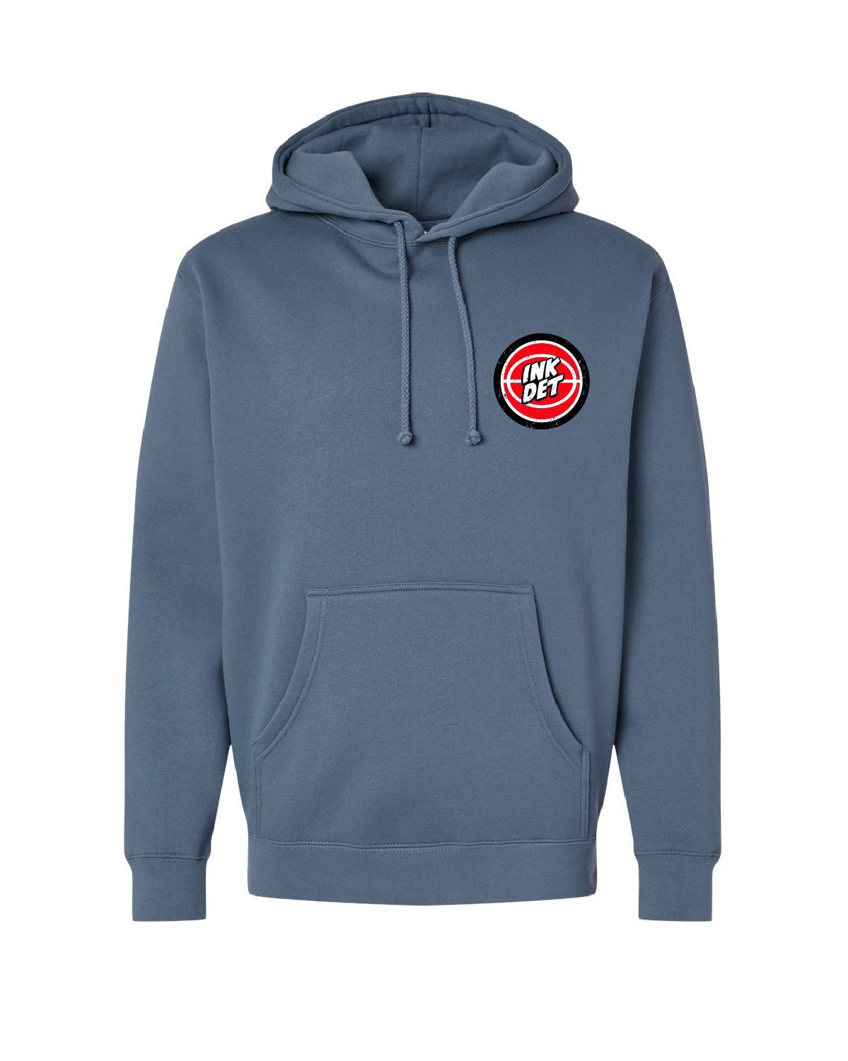 Detroit is known as the Motor City, and it's basketball team has been on a roll. So we wanted to launch some new designs. Meet Petey the Piston this character was created with some old timey cartoon vibes giving a unique look printed it on the back of this super premium storm blue hoodie with an left chest front print.