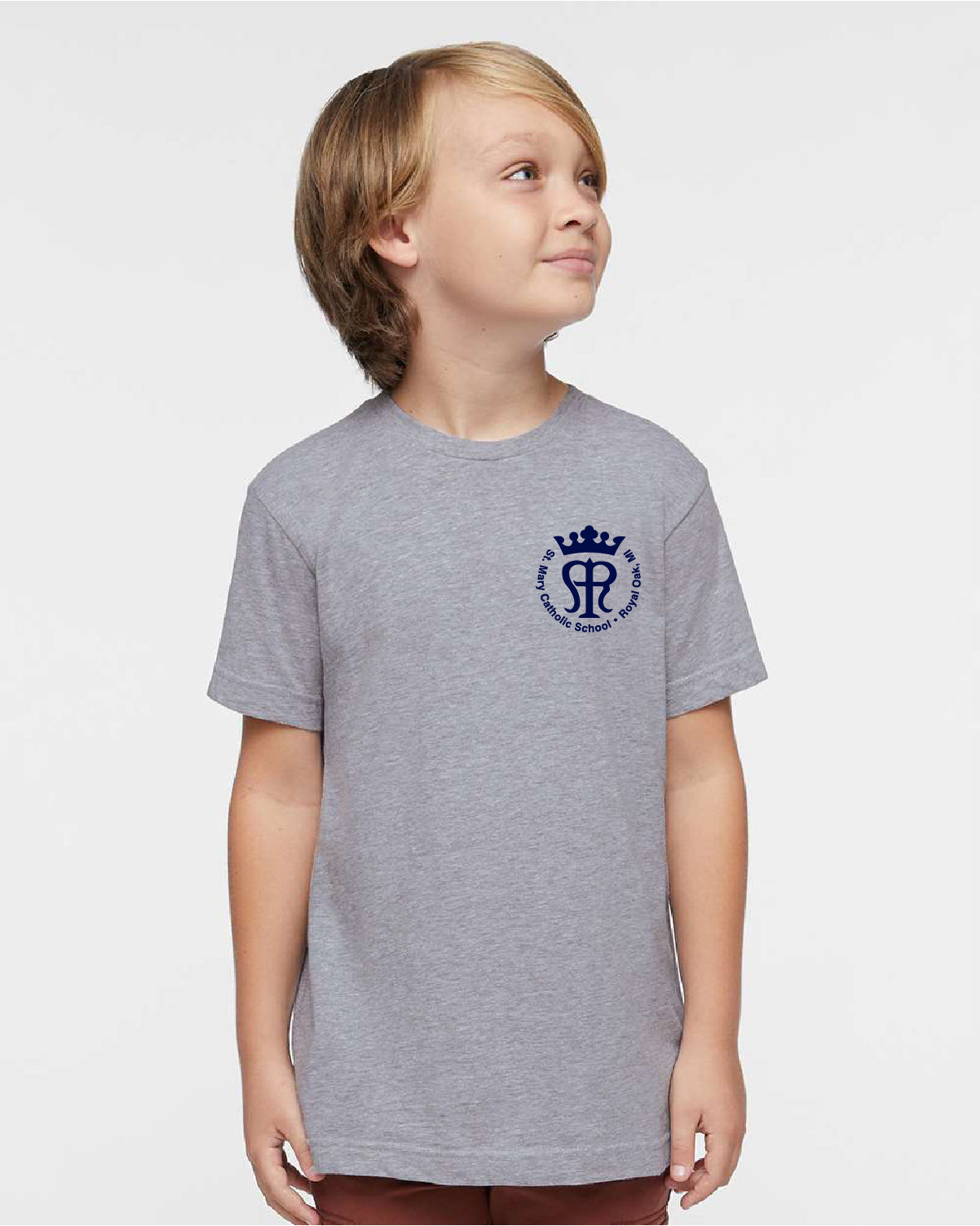 Varsity style St. Mary's logo on a youth T-Shirt.