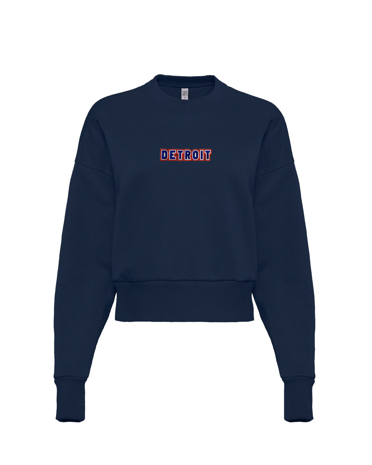 Ladies you will be comfy watching a cool evening game in this heavyweight boxy fit crewneck extra thick cuffs, waistband and featuring our classic baseball colorway patch.