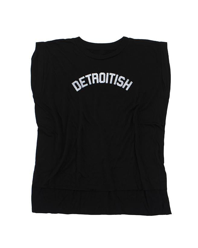 Ink Detroit Detroitish Women's Flowy Muscle T-Shirt Rolled Cuff - Black