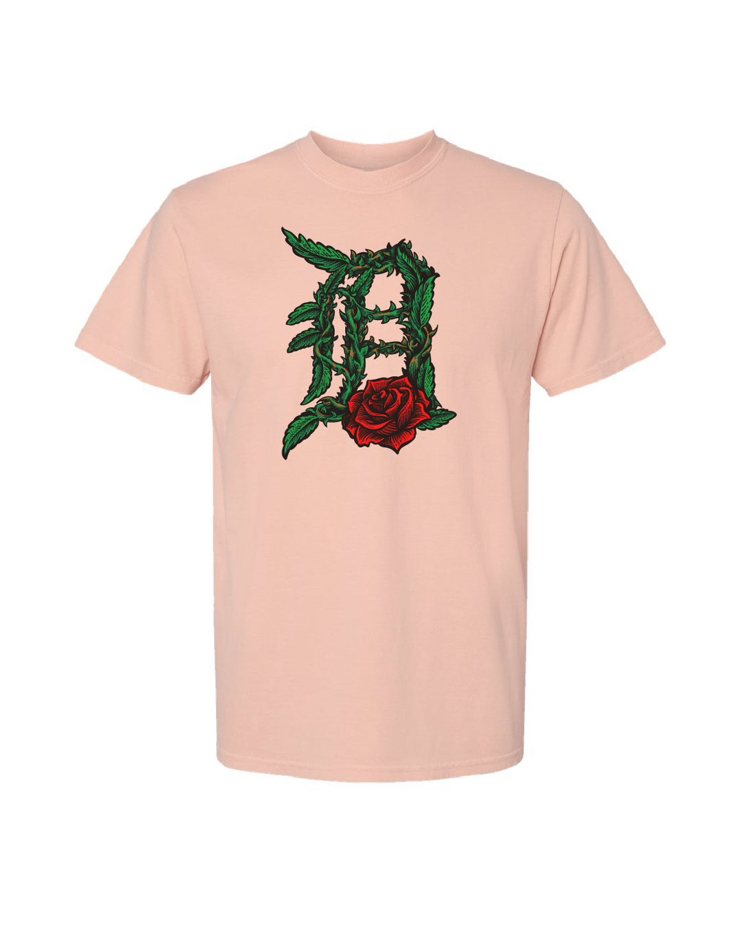 Ink Detroit - Old English D Rose - T-Shirt - Peach