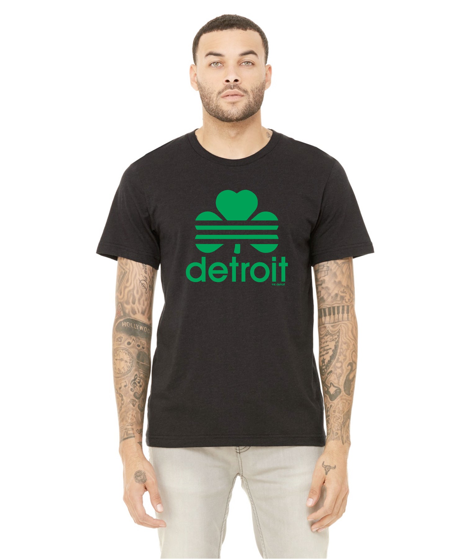 Be Detroit’s lucky charm for St. Paddy's with this soft retro cloverleaf t-shirt. Three leaves, three stripes, inspired by the timelines retro Adidas logo, you’ll never run out of luck or style.